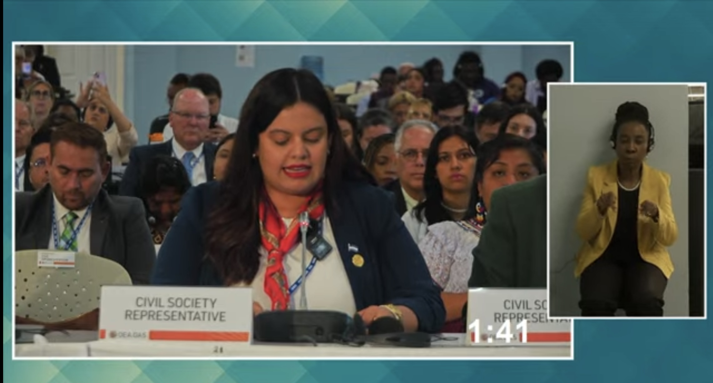 Yunova Acosta alza la voz en 55ª Asamblea General de la OEA